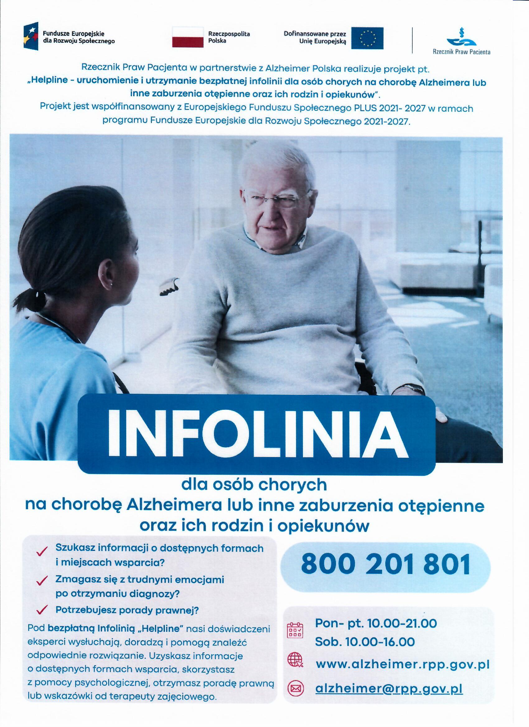 INFOLINIA dla OSÓB CHORYCH na CHOROBĘ ALZHEIMERA